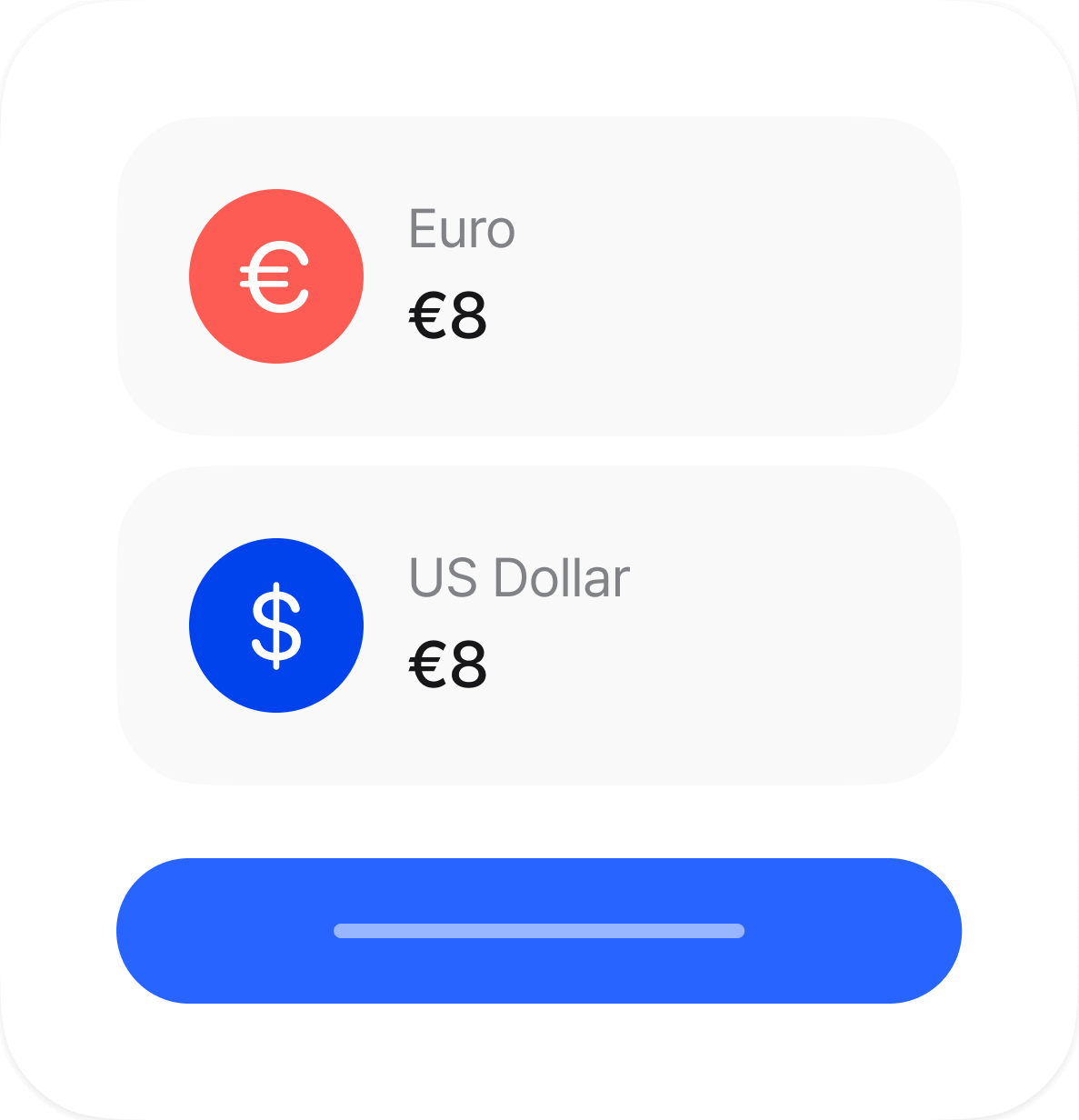 使用您的钱包以银行间汇率发送、接收和兑换货币。